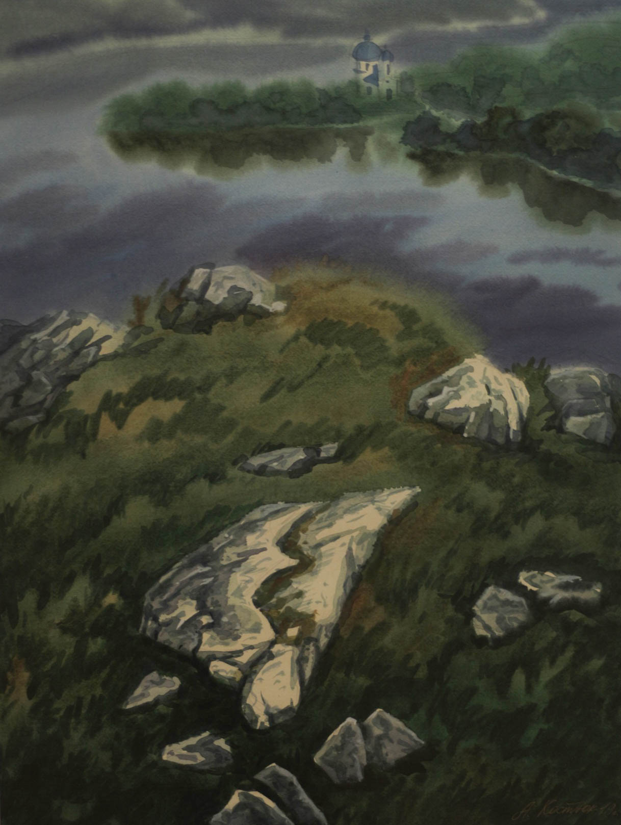 Тишина. Пленэр. 2019 г. Бумага, акварель, 60х44